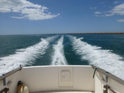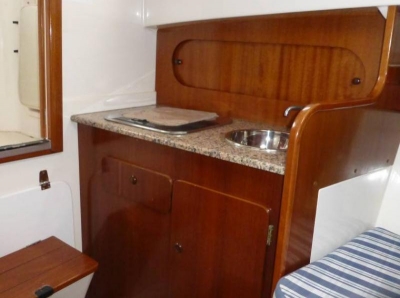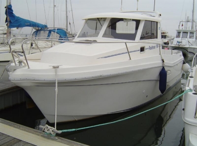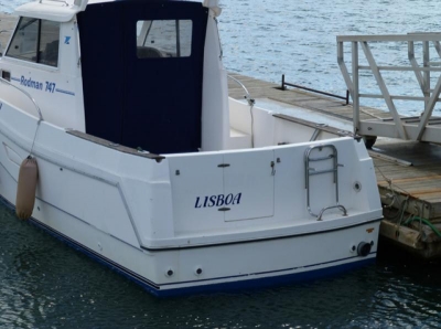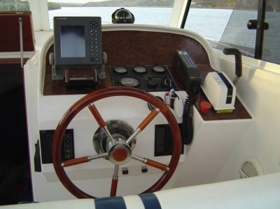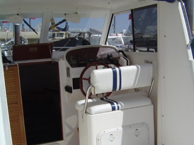 Excellent fishing/cruising boat with enormous cockpit and helm station at starboard. Closed cabin with U-shaped sofa and table (convertible into double bed) and small galley at port side. Full bathroom at starboard. Equipment: GPS/plotter FURUNO, Depth sounder, VHF with DSC, Radio with CD player, Battery charger, Inverter, 2 batteries 100Amp. Maritime toilet, fishing rod holders, 2 anchors, liferaft. Full canvas in blue. Maintenance Full hull painting, engine service, electric service, Antifouling, polishing of propeller. Boat in excellent condition.