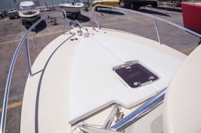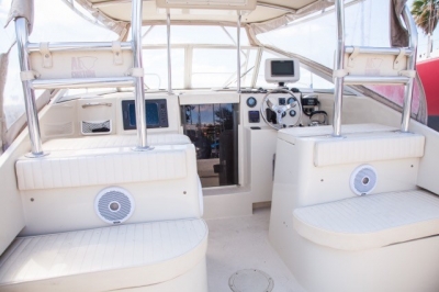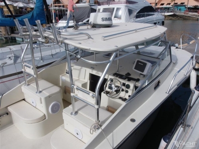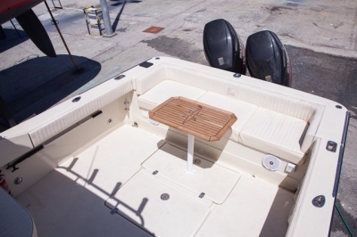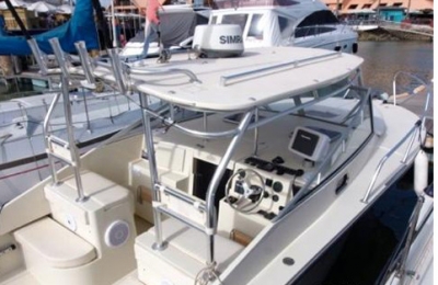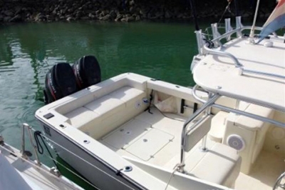 Fully equipped Walk around Sport Fishing Boat. Huge exterior and interior area. Bow cabin equipped with maritime toilet. Big salon with lot of storage and sofas at both sides. Some equipment: 2 Suzuki Outboard engines 300Hp each (2015) with 200h Cockpit teak table, Fiberglass Bimini, Electric Windlass, Outriggers, Maritime toilet, Radar, GPS/Plotter, Autopilot 2016, Automatic Flaps (2017), Depth sounder, VHF with DSC, Tridata, Radio with CD player, Sound system 1000W Fusion (2 amplifiers and 1 subwoofer), LED light in cockpit, Fridge, Inverter 220V. Boat in excellent condition.