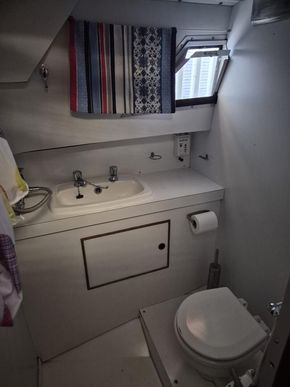 This boat has the advantage of three cabins, giving a family or guests great privacy.