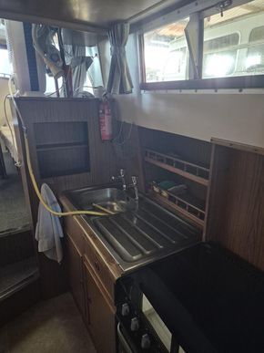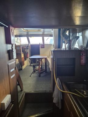 Powered by a single Perkins 90hp diesel engine on shaft, it cruises beautifully at 6 knots.