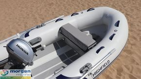 Highfield UL 340 (Ultralite) aluminium RIB with Valmex PVC tubes - capacity 5+1. No engine fitted - max 20hp - Morgan Marine can supply a suitable new or used outboard engine. Their light weight make them a real alternative for those who may have chosen a soft bottom tender in the past but would prefer a hard hull for its performance. Ultralite tenders are roomy and strong, yet light and easy to transport. These little boats can be launched and recovered by a single man and are easy to be transported on a roof rack. You will be impressed by their obvious quality level. The excellence of the finish only compares the detail of the ergonomics. The simple layout is combined with an uncluttered design and numerous standard accessories complete the picture. This is a brilliant rib for all of the family offering plenty of seating, high equipment level and great performance. Design category C. Please note images shown may not match specification.