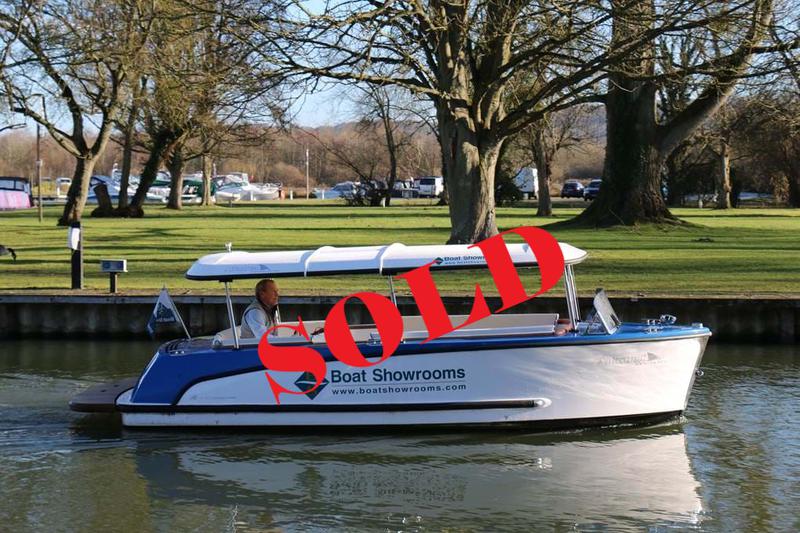 Powered by an Aquamot 4.3kw electric motor, for peaceful motoring. Very spacious and efficient hull design, in royal blue, with white decks. Included in the sale price are: radio with marine speakers, cockpit table, roof & cockpit lighting along with bathing platform. This boat has an hydraulic lifting hard top and so at the push of a button the roof can be lifted and the boat can be ready to go in seconds. Likewise, when it's time to secure the boat and leave, push the button and the lid secures the boat ready for it's mooring.